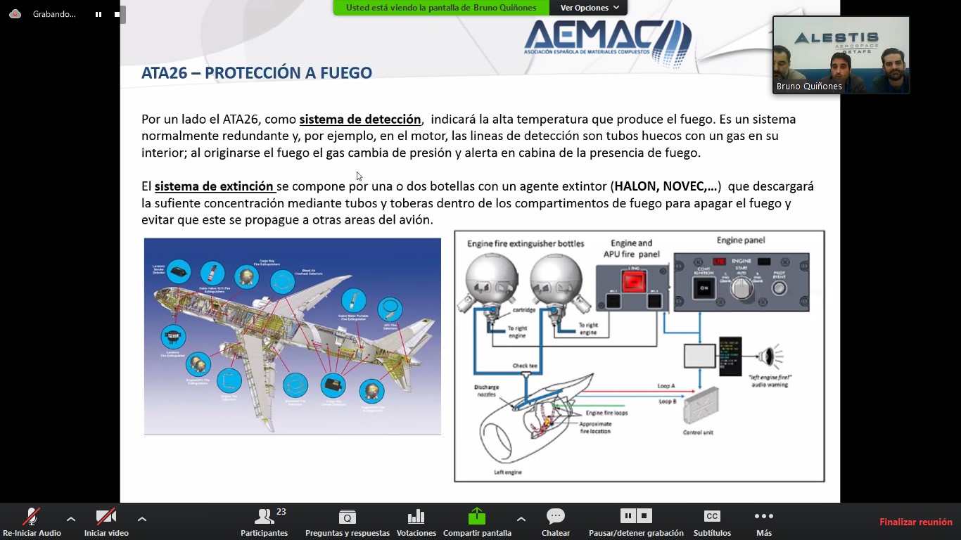 El Webinar que llevaba por título «Ensayos y aplicación de materiales compuestos en zonas de fuego en la industria aeroespacial» se estructuró en tres partes presentadas por cada uno de los ponentes :